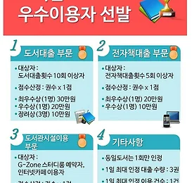 11월 신작 DVD 더보기 11월의 추천도서 자세한 정보는 링크를 참고해 주세요 http://lib.gtec.ac.kr/Recommendation 더보기 2018 도서관 우수이용자 선발 안내 2018학년도 도서관 우수이용자 선발 안내 ☆ 총 상금 : 140만원 ☆ * 대 상 : 재학생 * 대상기간 : 2018.3.2~11.30 * 선발 및 시상 : 2018.12.12(수) * 선발방법 : 아래 사진 참조(점수 산정에 있어 본 공지 이외의 사항은 내규에 따름) * 기타문의 : 종합자료실, 인터넷카페 방문 더보기 이전 1 ··· 12 13 14 15 16 17 18 ··· 71 다음