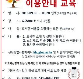 10월의 추천도서 자세한 정보는 링크를 참고해 주세요 http://lib.gtec.ac.kr/Recommendation 더보기 2018-2학기 도서관 이용 안내 교육 더보기 9월 신작 DVD 더보기 이전 1 ··· 14 15 16 17 18 19 20 ··· 71 다음
